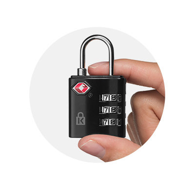 提升行李箱的安全性,让您高枕无忧。必要时,TSA 官员可以使用一把主钥匙打开获得 TSA 认可且具有 1,000 种可重置组合的 3 位数组合密码锁,对您的行李箱进行检查。绝对不会损坏密码锁或您的行李箱。由设备安全领域的领军者肯辛通 (Kensington) 打造。